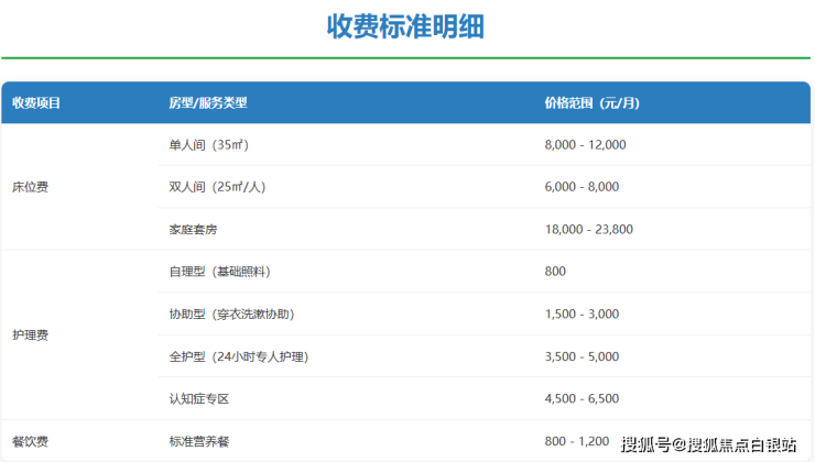 星堡中环养老社区二期采用透明化分层定价模式,具体收费构成如下: