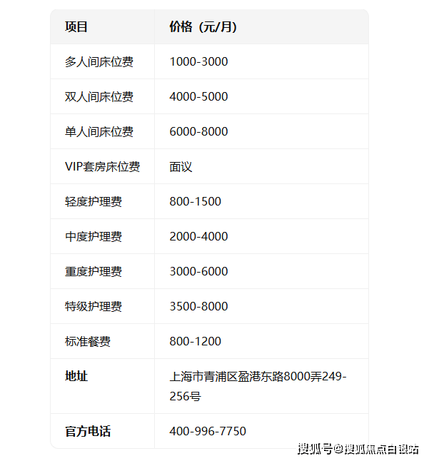 青浦区养老院价格表一览:同泽护理院3月地址、收费