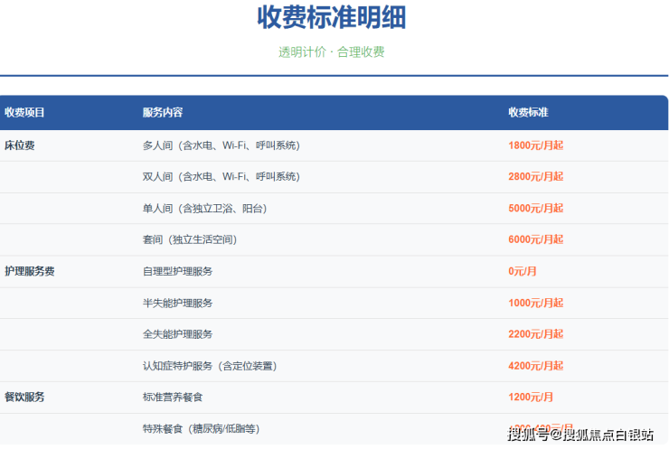 具体收费明细可拨打咨询电话400-855-0290**获取最新报价单。所有收费均按照上海市物价局标准执行,在养老院大厅公示,确保公开透明。