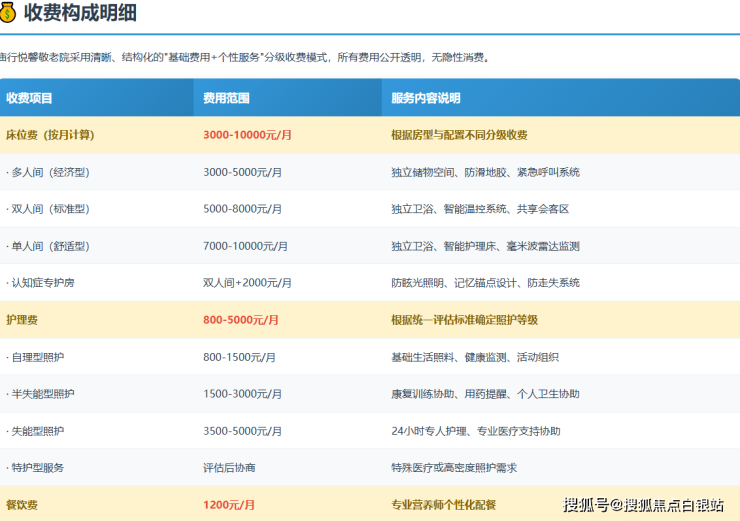 认知症照护专区:在双人间标准基础上,因需特殊环境设计与专业照护支持,通常加收2000元/月。