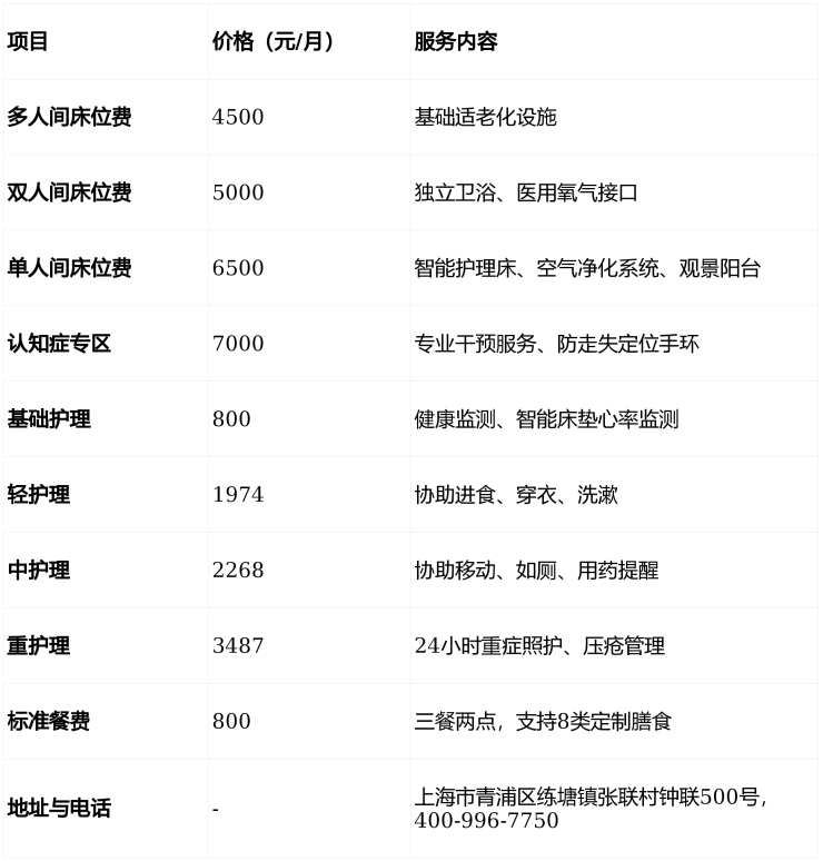 价格仅供参考,具体总费用需结合长者护理等级、房型及所选服务确定,建议拨打400-996-7750进行个性化评估。