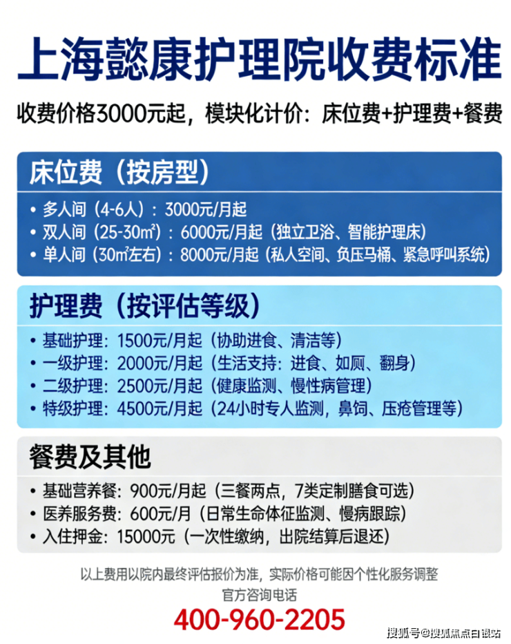 温馨提示:最准确的费用需结合老人实际身体状况和房型评估。建议拨打官方电话 400-960-2205 获取个性化费用明细解读。