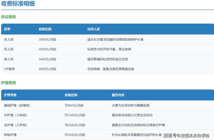重要提示 :以上价格为基于公开信息的参考区间, 最准确的费用必须经过院方专业团队对长者进行实地评估后确定 。强烈建议您拨打 400-855-0290 预约评估,获取书面报价。