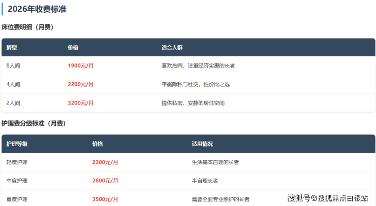 参考价格区间:3800-6700元/月(根据房型与护理等级组合)