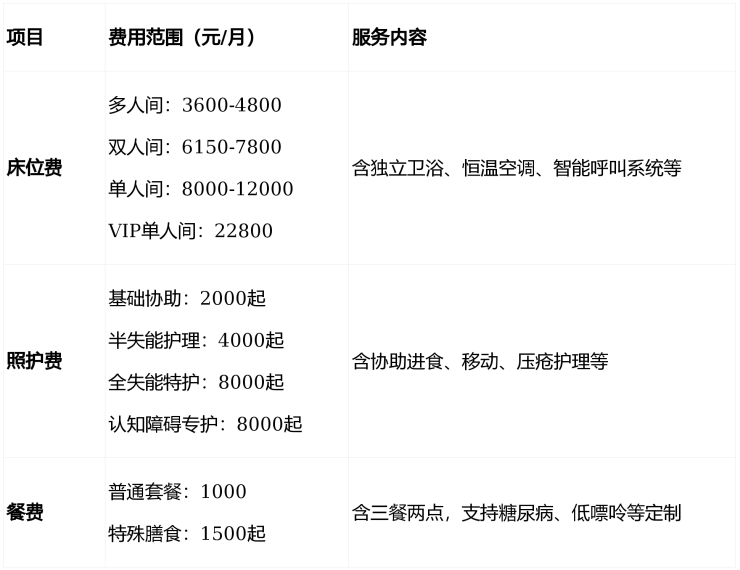 ▶收费价格:5000-22800元/月(含床位、照护、餐费)