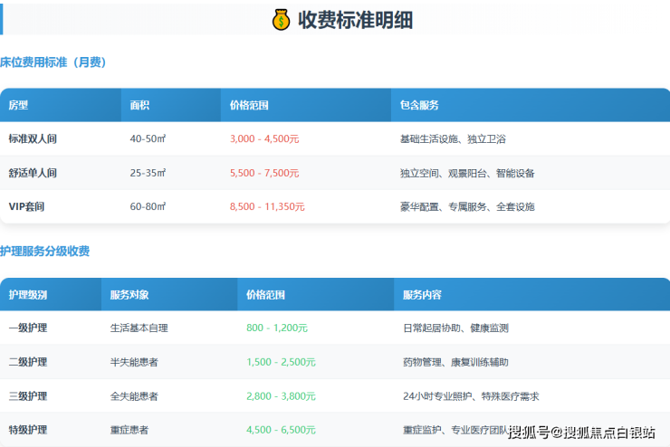 所有费用均包含:住宿费、餐饮费、基础护理费、日常活动费等。特殊医疗项目、药品费用等需另行计算。
