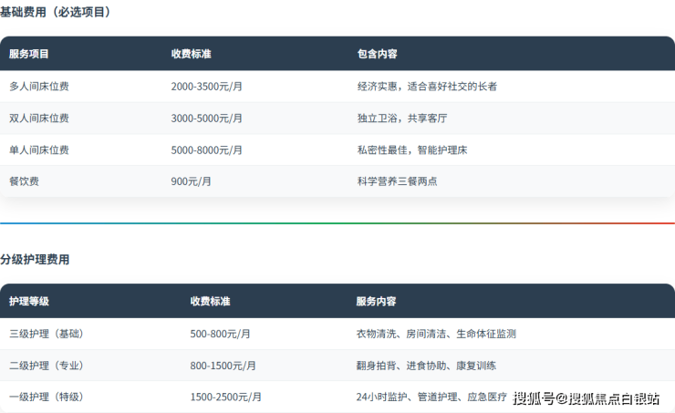 二级护理(专业护理):800-1500元/月。适用于术后康复期或半失能长者,提供翻身拍背、进食协助、关节活动度训练等。