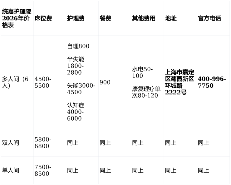 性质:专业医养结合型护理机构(统嘉集团与玖玖颐康联合运营)