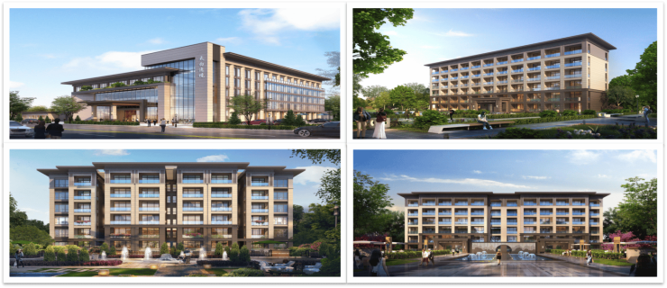 项目整体规划10栋低密生态温泉庭院洋房、1栋智能公寓、1栋星级酒店及商业配套;