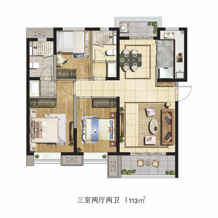 113㎡三室两厅两卫