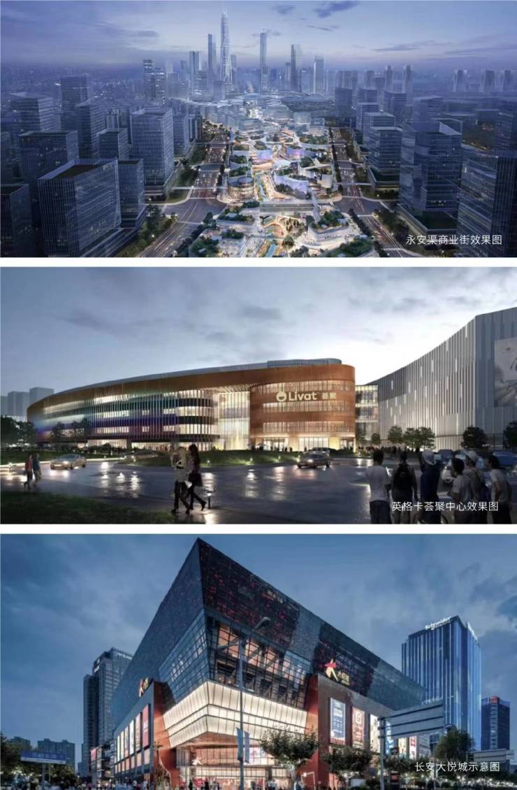 万科城生活里广场、阳光天地、英格卡荟萃中心、长安大悦城、永安渠滨水商业街
