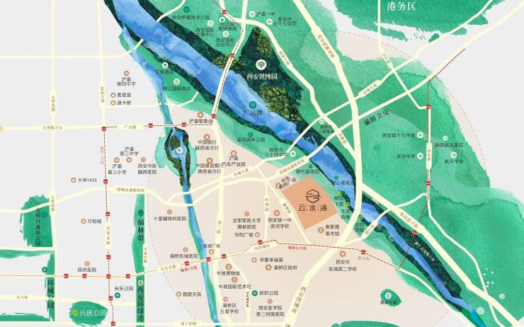 5、生态:项目紧邻2.45平方公里的灞桥生态湿地公园。灞桥生态湿地公园,湿地面积1980亩,绿化面积1650亩。通过对灞河的综合治理及湿地景观的重建,确保灞河百年安澜。灞桥生态湿地公园秉承“人与自然和谐共生”的理念,以灞桥、灞柳、灞水为主题文化,使灞河的历史文化和乡土风情得以复苏和弘扬,成为集城市防洪、生态景观、人居休闲、旅游观光为一体的景观长廊,有效改善了周边区域的人居环境和城市形象。