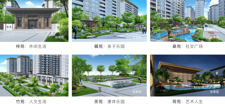 六苑赋予不同主题,全区共享,创建复合式“新型邻里”的生活模式,带来丰富的居住生活体验。