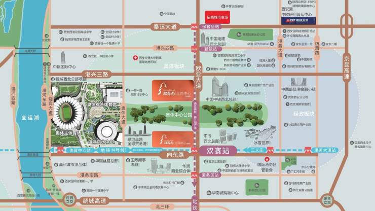 位置距离西安绕城高速约5公里,距离港务区管委会约4公里,距离灞河约2.8公里,与地铁3号线和地铁14号线双寨站无缝对接。
