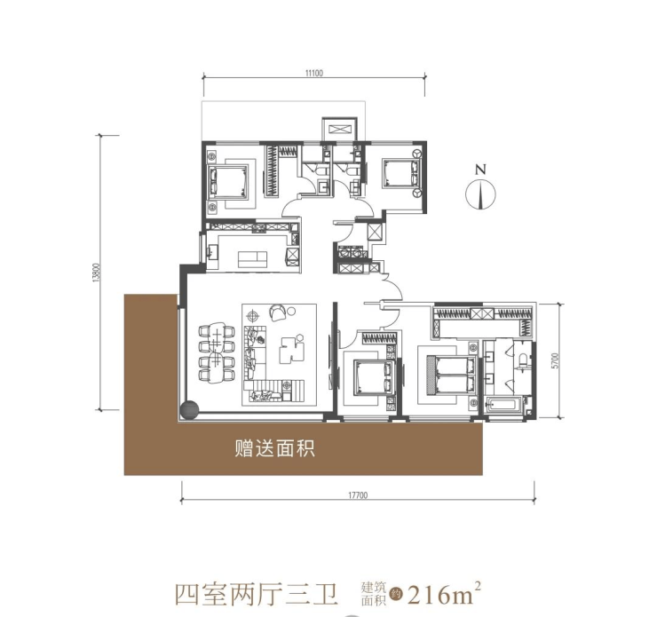 建筑面积约168㎡ 四室两厅两卫