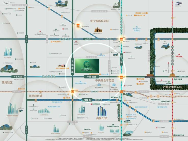 项目踞守着主城接驳高新的门户位置,项目向南约3KM快速接驳着高新科技路CBD核芯商务区,占据着都荟发展的核芯优渥土地,未来随着高新与主城两大区域发展融合,项目所处位置将成为打造中央融合示范区的关键节点。