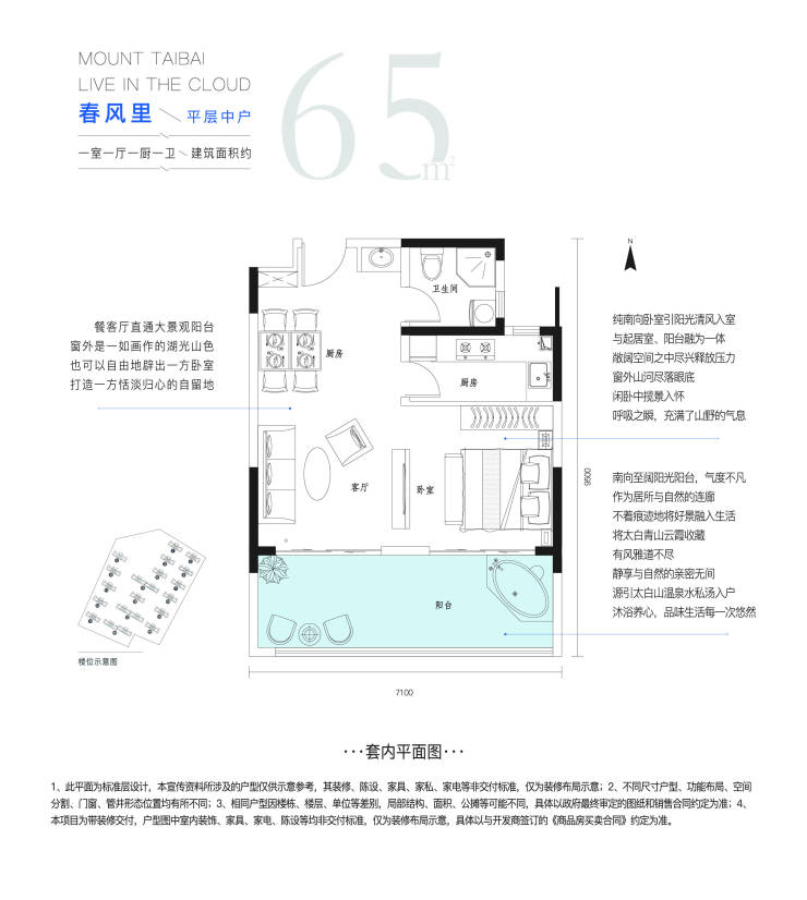 巨幕阳台:太白山同类型产品最大尺寸阳台,进深2.4米,开间7.1米~7.7米
