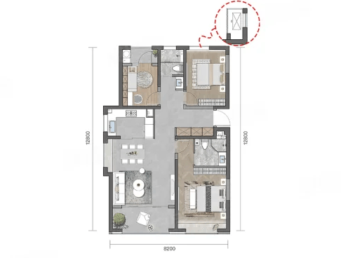 3室2厅2卫1厨, 126平米