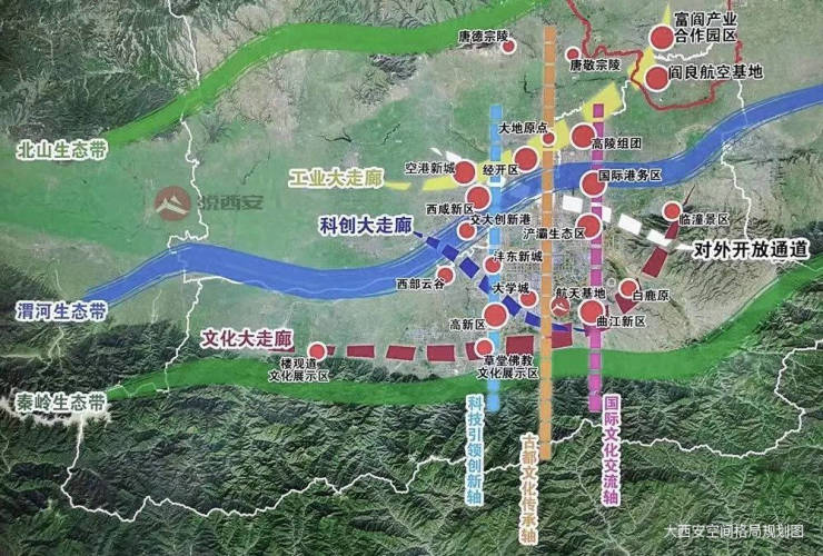 大西安规划三轴三带多中心空间规划格局