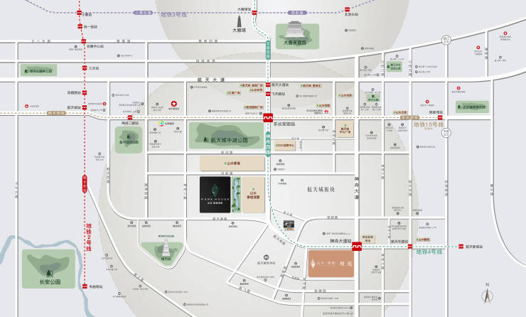 楼盘地址:航天南路与神舟大道十字西南角(地铁4号线神舟大道站B出口南200米)