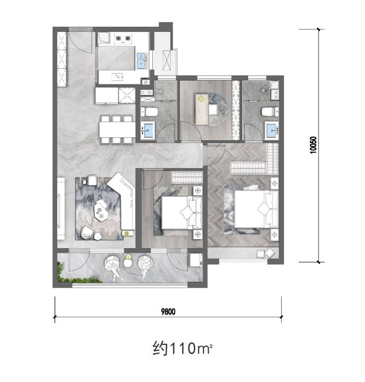 【产品面积】建筑面积约110㎡、130㎡、143㎡、196㎡