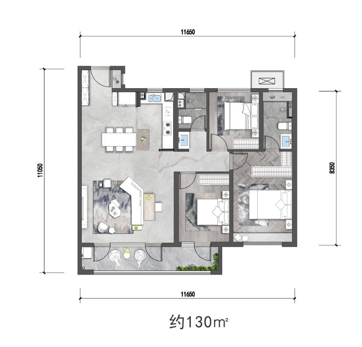 【产品面积】建筑面积约110㎡、130㎡、143㎡、196㎡