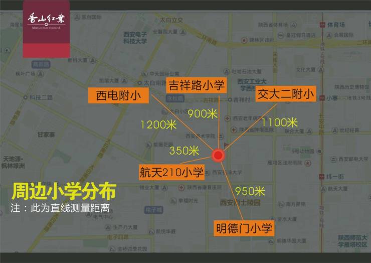 幼儿园:小区配套公立幼儿园,石油大学幼儿园,交通大学幼儿园,小学:吉祥路小学、西电附中、交大二附小、210小学,877小学,明德门小学初中:46中,交大二附中、西电附中、85中等大学:西安美院,石油大学,长安大学,西北政法大学,音乐学院
