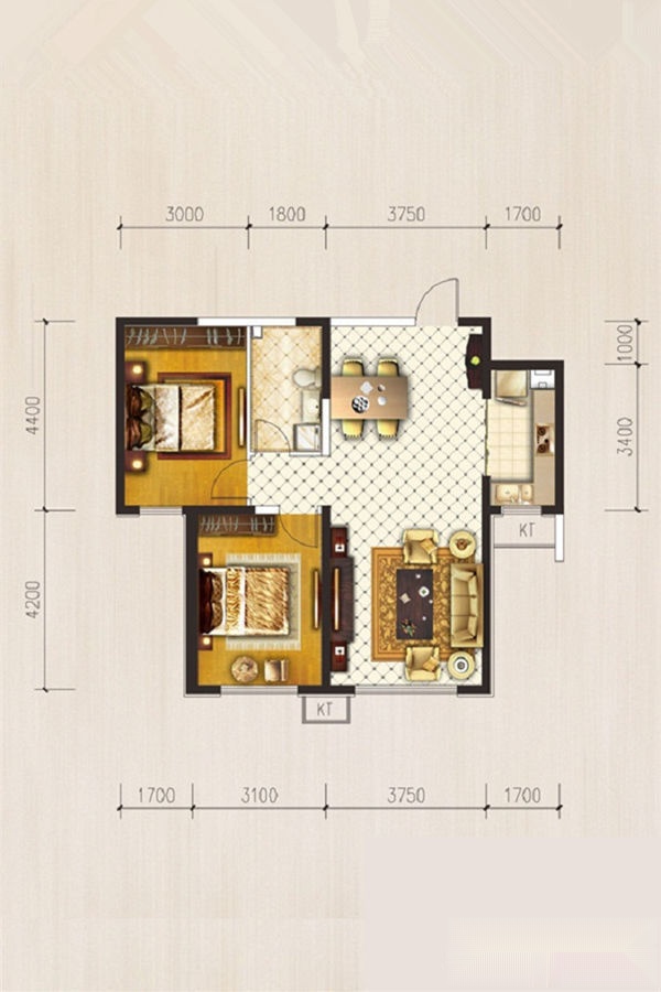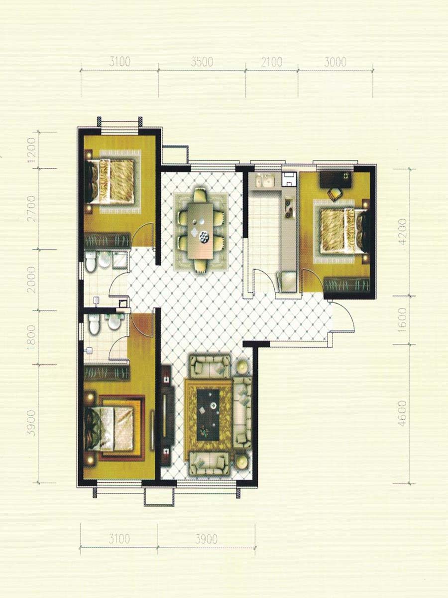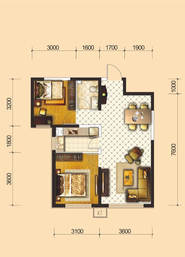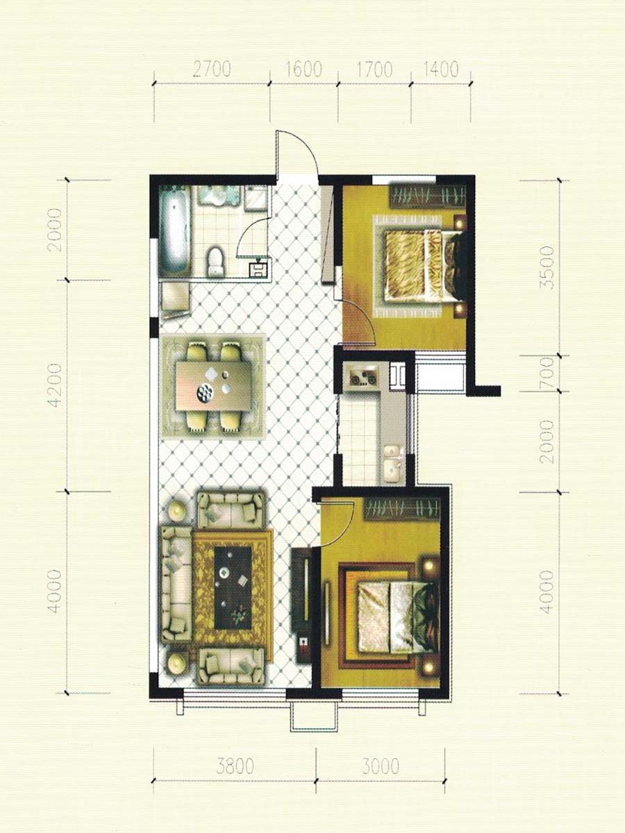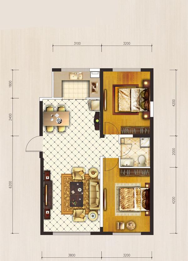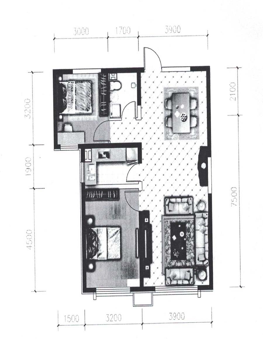 2室2厅1卫-一期1#XA3/XA4/DA3户型