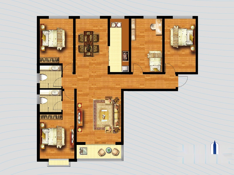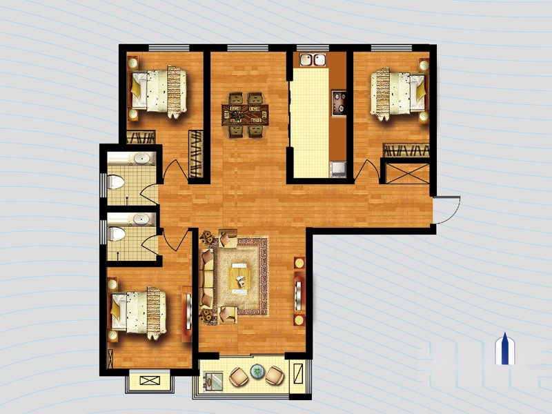 4室2厅2卫-1号楼A1户型