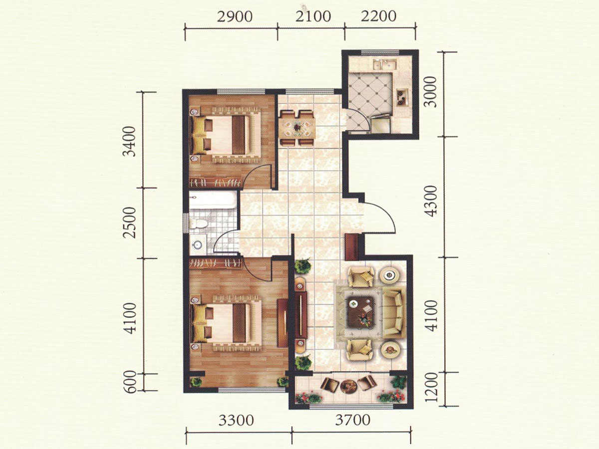 2室2厅1卫-C1户型