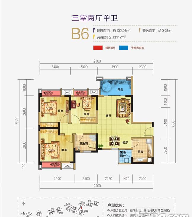 39万/套 建面102.95m²
