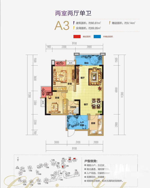 33万/套 建面88.14m²