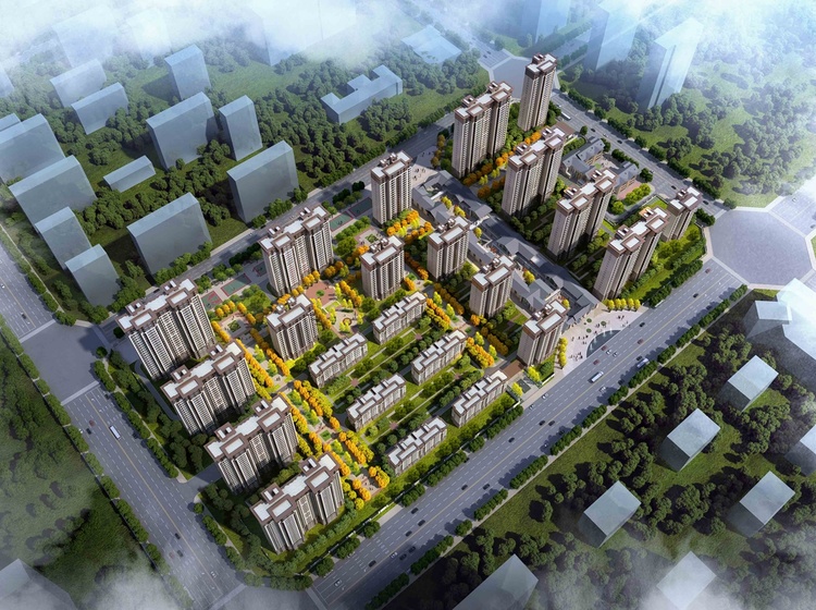 项目总占地188亩,总建筑面积39万平米,项目容积率为2.20,共建有23栋楼;设计理念为新中式建筑风格,在立面形象中,体现新中式建筑元素,在设计中力求简洁大方,细部处理追求简约中的丰富变化。