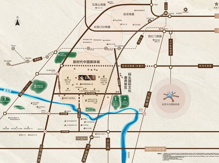 商业:大房山首创奥莱商圈、房山CSD商圈,约15公里市区内宜家旺购物广场、惠友钻石广场、华冠天地、万科社区商街