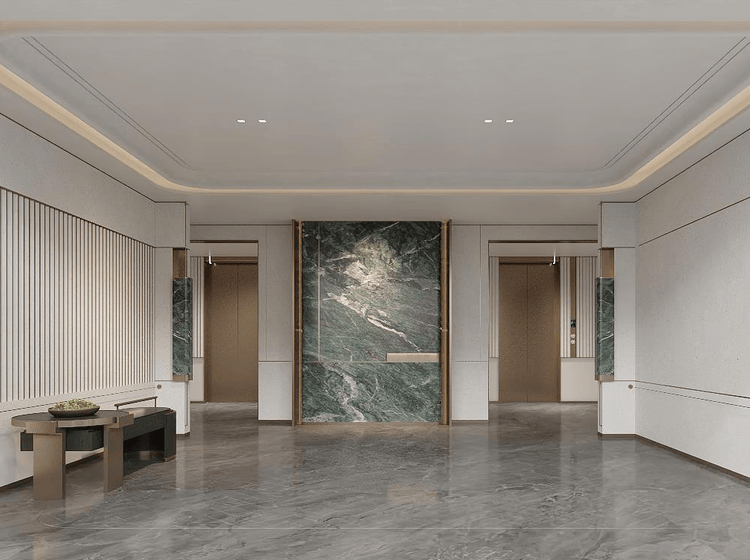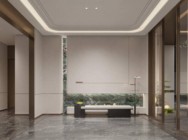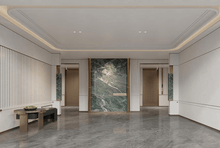 首层、地下双重入户精装大堂,内部延用了prada绿奢石质感,通高仿石材墙面与金属线条的黄金分割,以优雅奢华的建筑风格,塑造简洁大气的归家空间,开放式布局,尽显通透宽敞。