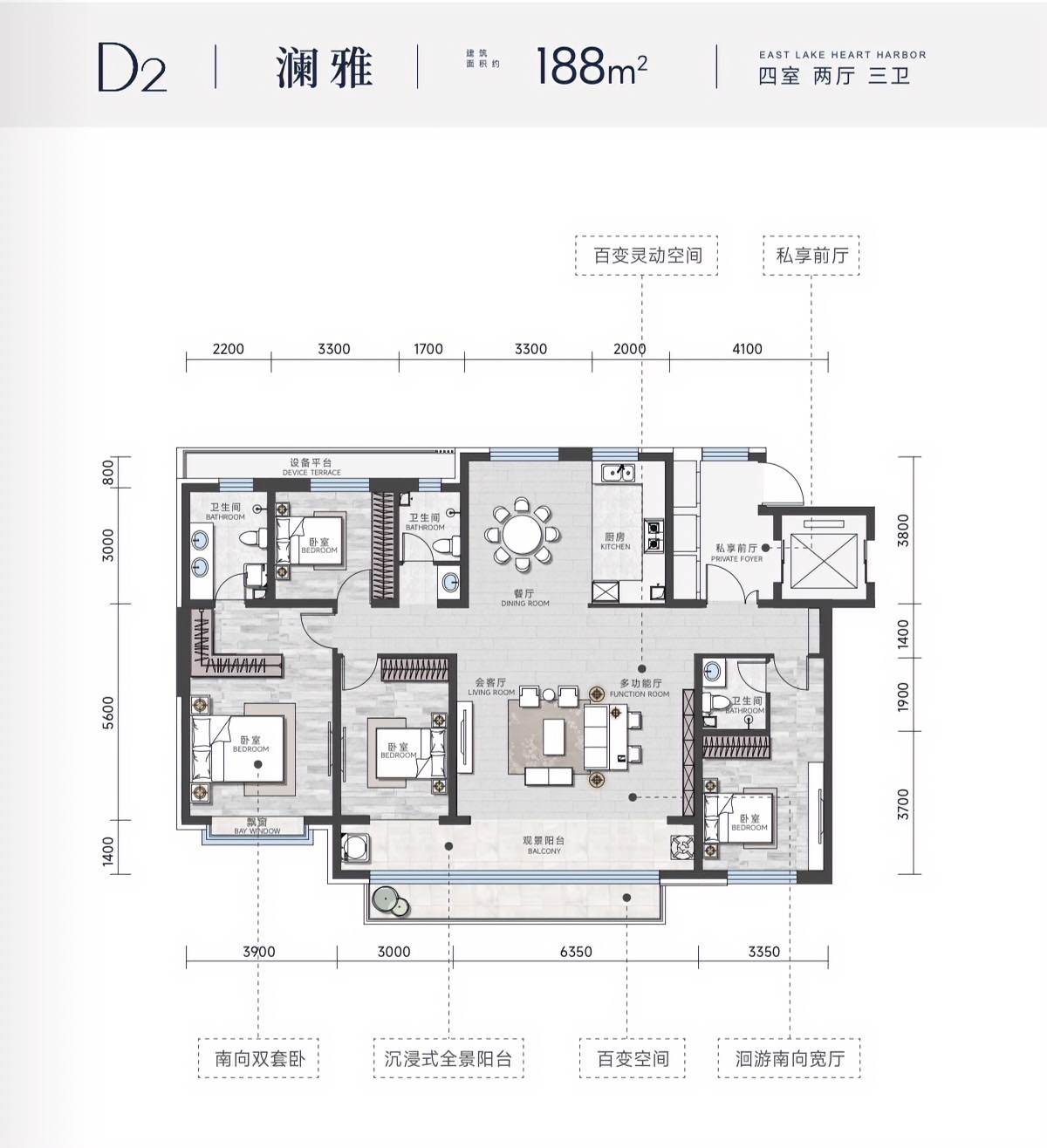 文娱丰盛 生态大境:尽享约660 亩东湖浩瀚水域及约25 万㎡绿地生态,紧邻环城水系景观带,项目距关汉卿大剧院直线距离约 500 米,距中国古动物馆直线距离约 2.5 公里,文化艺术中心和商业中心,全维度配套满足生活所需。