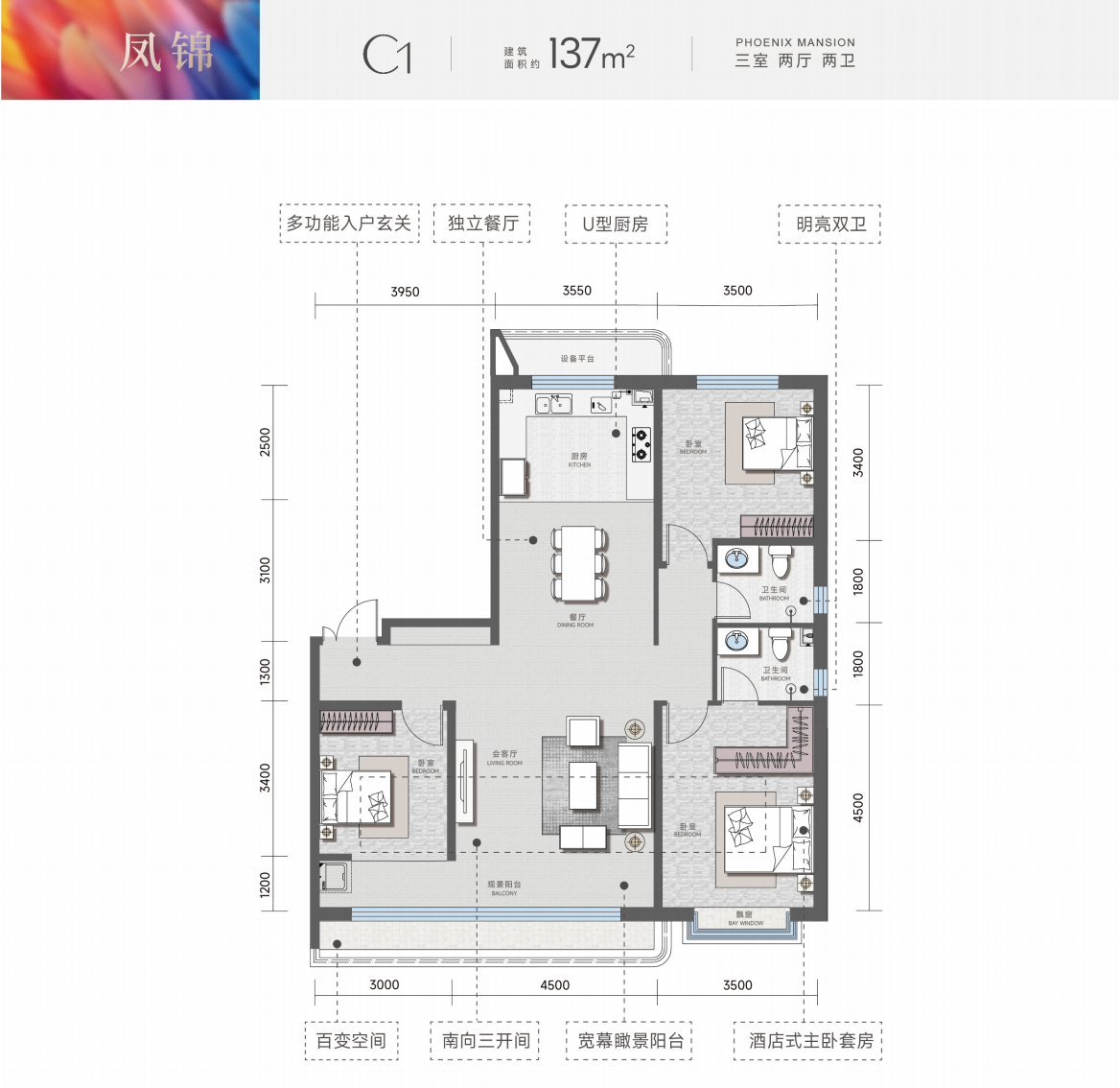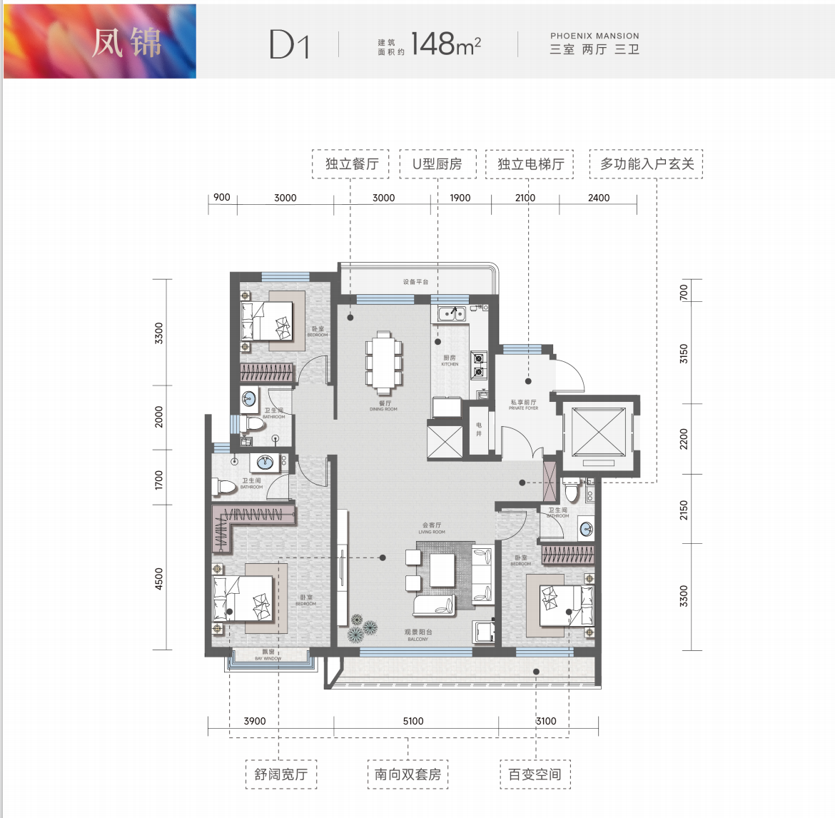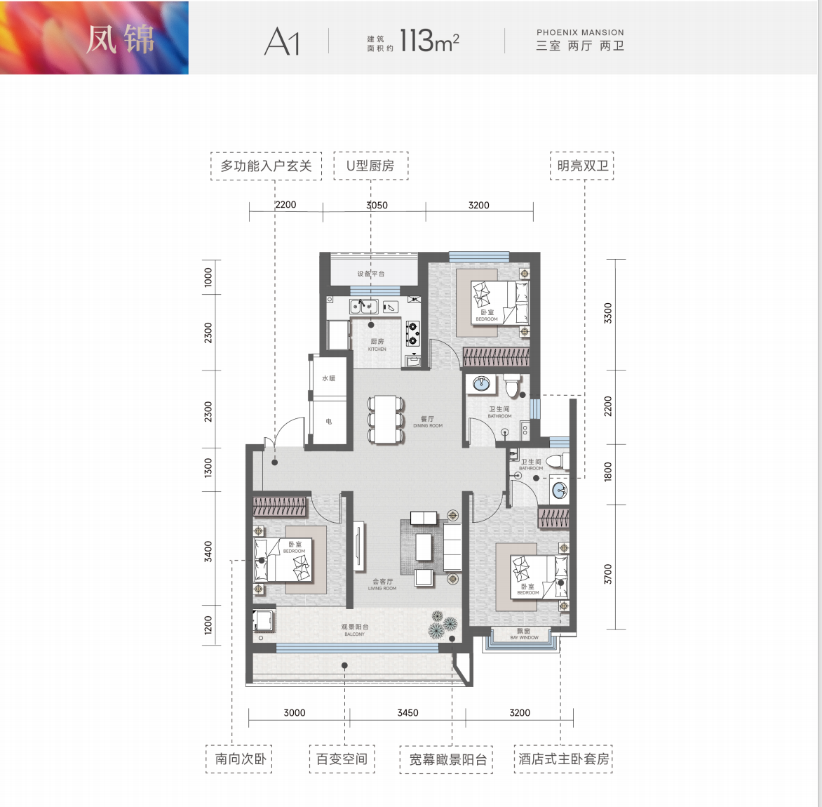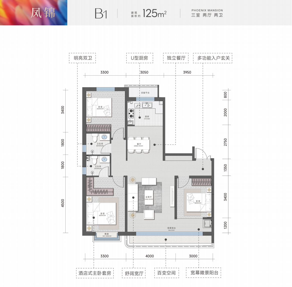 凤栖麓鸣项目占地面积约19504.7平方米,占地29亩,建筑面积约74413.87平方米,容积率2.50,建筑密度19.99%,绿化率35.1%,车位配比1:1.14,商品房为380套。凤锦苑共规划7栋住宅楼,由5栋15-18层小高,2栋6-10层的洋房组成,面积段分别约为113、125、137、147、156㎡。