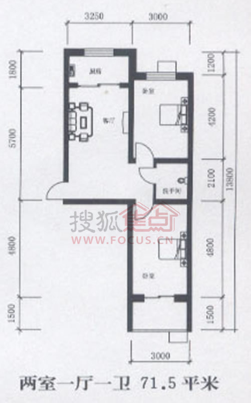 2室1厅1卫-两室一厅一卫 71.5平米