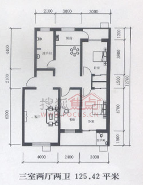 3室2厅2卫-三室两厅两卫 125.42平米