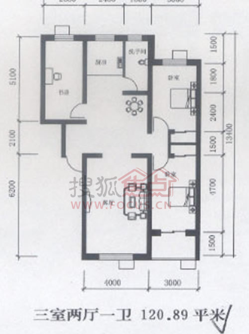 3室2厅1卫-三室两厅一卫 120.89平米