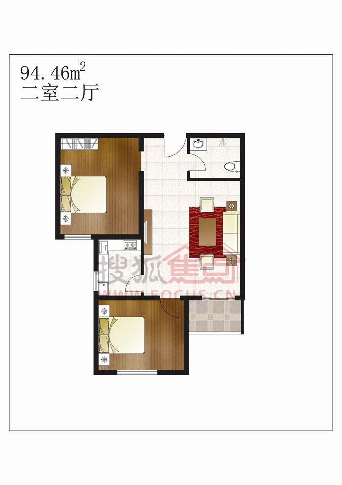 2室2厅1卫-晨巍佳欣两室两厅94.46平米
