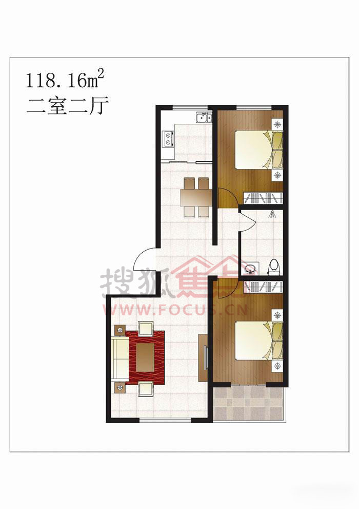 2室2厅1卫-晨巍佳欣两室两厅118.16平米