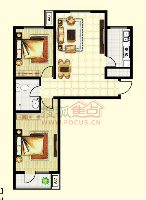 2室1厅1卫-2居室87.62平米A-3