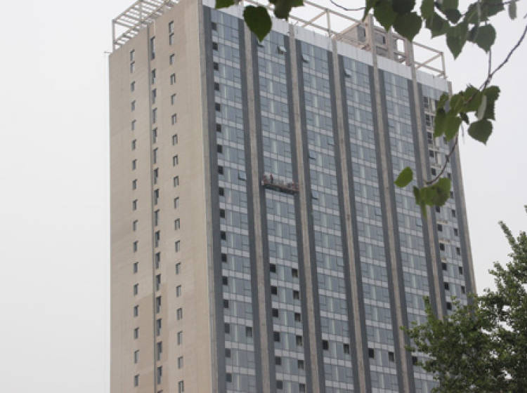 直隶珠宝古玩城由南侧的商业楼和北侧的公寓楼组成,总占地面积8063.5㎡,总建筑面积53916㎡,其中地上40216㎡,地下为13700㎡,绿化面积达1677.76㎡。直隶珠宝古玩城呈南北走向,南侧裙楼与北侧的高档商务公寓中间形成了下沉式的庭院。主题公寓楼高度为99.9m,其中一到二层为商业,三层到二十八层为高档公寓,总户数约为670户。公寓采用断桥铝合金双层中控低辐射玻璃,双层保温、隔热、减少能耗、隔音。商业裙楼共五层,裙楼围绕公寓楼南侧,首层精品屋、咖啡、餐饮,二层为流行商业户外休闲。现在力推的是裙楼的三、四、五层,其中福堡秀域对裙楼的屋顶进行了屋顶绿化,均为可上人屋面,打造商业楼上得空中花园。地下车库采用立体升降式,是保定采用立体升降车库的楼盘,覆盖用户达80%。