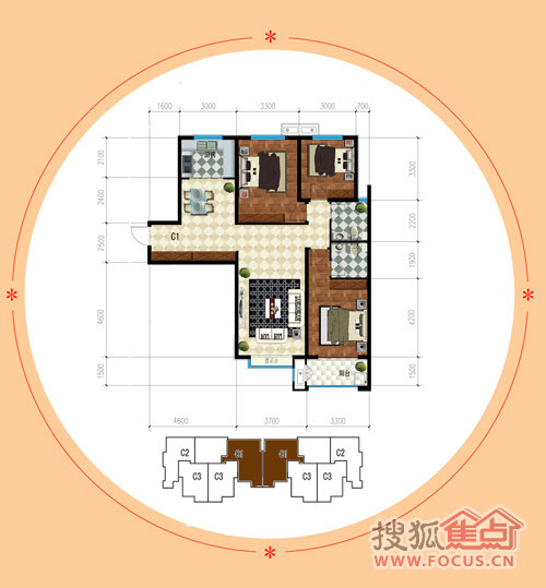 3室2厅2卫-公园时代三室两厅两卫C1户型图