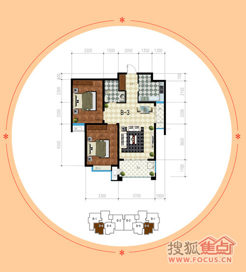 3室2厅2卫-公园时代三室两厅两卫B2户型图