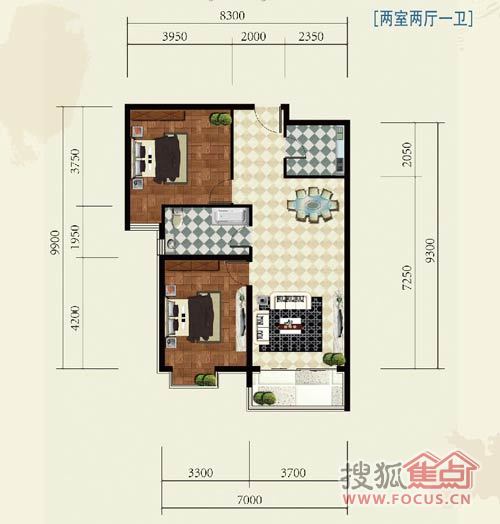 2室2厅1卫-公园时代两室两厅一卫B3户型图