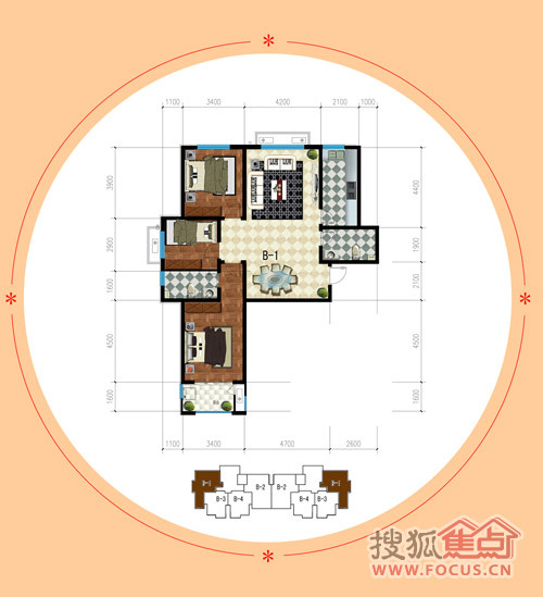 3室2厅2卫-公园时代三室两厅两卫B1户型图