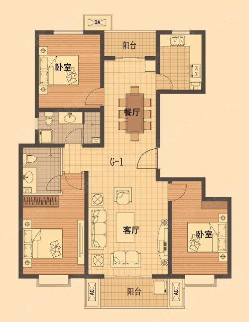 3室2厅2卫-G1三室两厅两卫137.04平米户型