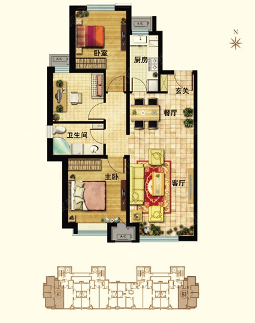 2室2厅1卫-F3两室两厅一卫92.68平米户型